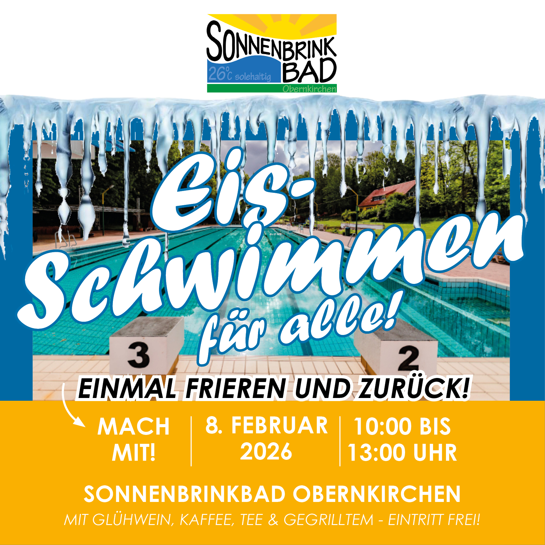 Ab Sonntag, 8.Ferbuar 2026 startet der Kartenvorverkauf im Sonnenbrinkbad! Sichert Euch jetzt schon eure Saisonkarte 2026! Die Preise bleiben unverändert wie letztes Jahr. Ab 9.2. ist die Kasse montags bis freitags von 8:00 bis 12:00 Uhr geöffnet. Wir freuen uns auf eine tolle Badesaison 2026!